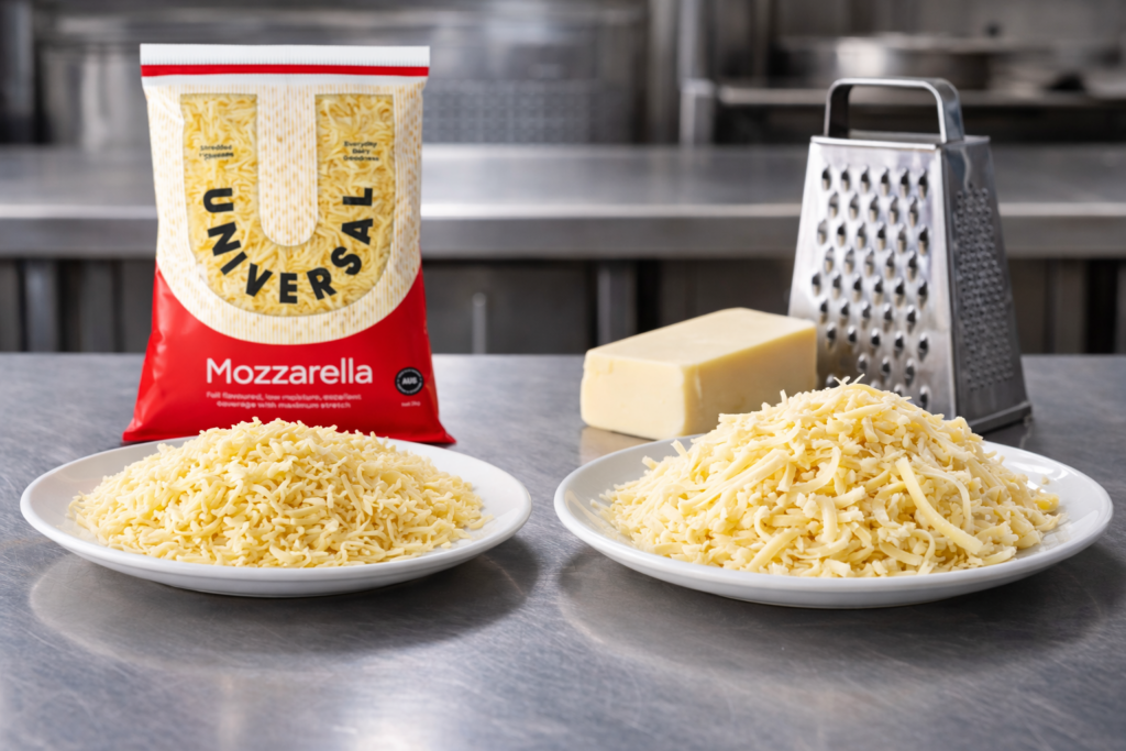 At a glance The cheese format used directly influences service speed, consistency, waste control and overall kitchen workflow. In high-volume commercial kitchens, reducing in-service preparation steps is critical to maintaining throughput during peak periods. Using shredded cheese limits preparation steps and supports more consistent application across teams and shifts. Block cheese relies on controlled preparation […]